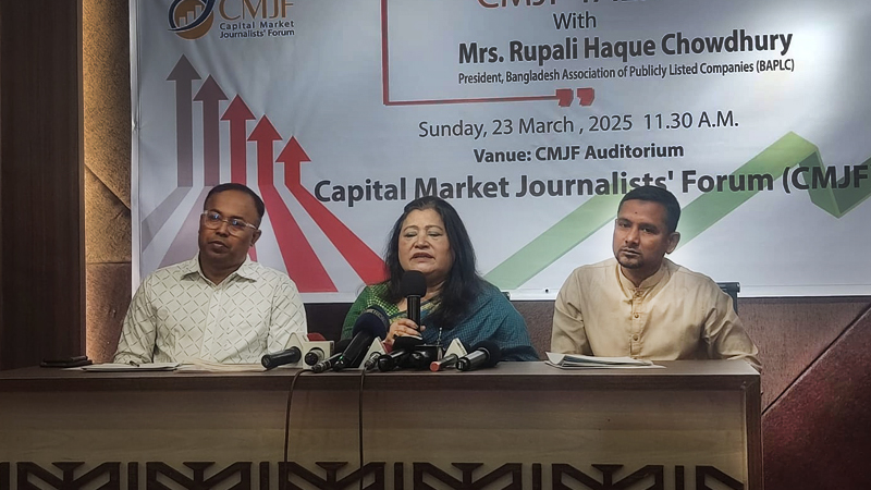 রোববার (২৩ মার্চ) রাজধানীর পল্টনস্থ ক্যাপিটাল মার্কেট জার্নালিস্ট ফোরাম (সিএমজেএফ) আয়োজিত সিএমজেএফ টক-এ বাংলাদেশ অ্যাসোসিয়েশন অব পাবলিকলি লিস্টেড কোম্পানিজের (বিএপিএলসি) সভাপতি ও বার্জার পেইন্টস বাংলাদেশ লিমিটেডের ব্যবস্থাপনা পরিচালক রূপালী হক চৌধুরী এসব কথা বলেন।