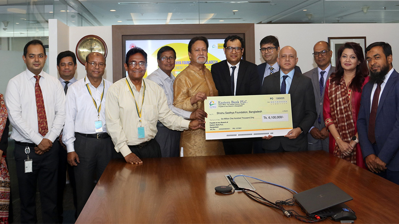 এ লক্ষ্যে আজ রাজধানীতে অবস্থিত ইস্টার্ন ব্যাংকের প্রধান কার্যালয়ে আয়োজিত এক অনুষ্ঠানে ইবিএল উপ-ব্যবস্থাপনা পরিচালক আহমেদ শাহীন শিশু স্বাস্থ্য ফাউন্ডেশন, বাংলাদেশ এর মহাসচিব প্রকৌশলী রেজা করিমকে ৬১ লক্ষ টাকার একটি চেক হস্তান্তর করেন।
