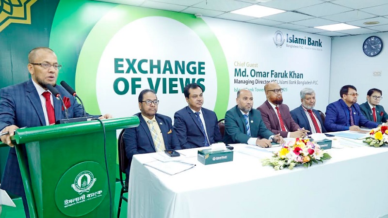 ইসলামী ব্যাংক বাংলাদেশ পিএলসির ম্যানেজিং ডাইরেক্টর (চলতি দায়িত্ব) মোঃ ওমর ফারুক খান’র সাথে প্রধান কার্যালয়ের নির্বাহী, জোন ও শাখাপ্রধানদের মতবিনিময় সভা সোমবার ইসলামী ব্যাংক টাওয়ারে অনুষ্ঠিত হয়।