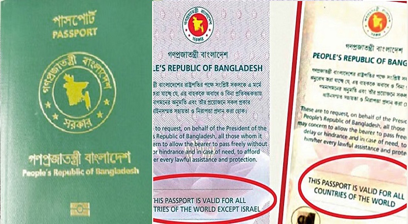 বাংলাদেশের পাসপোর্টে ‘একসেপ্ট ইসরায়েল’ বা ‘ইসরায়েল ব্যতীত’ শর্ত পুণরায় বহাল করা হয়েছে।