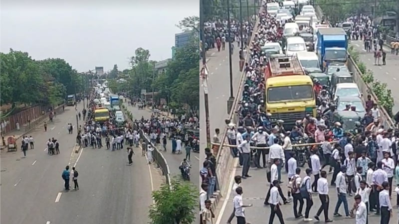 তেজগাঁওয়ে পলিটেকনিক শিক্ষার্থীদের সড়ক অবরোধ