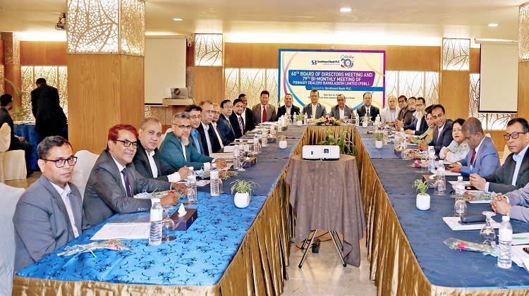 সাউথইস্ট ব্যাংক পিএলসি’র আয়োজনে সম্প্রতি ঢাকার গুলশানের লেকশোর হোটেলে প্রাইমারি ডিলারস বাংলাদেশ লিমিটেড (পিডিবিএল)-এর ৬০তম পরিচালনা পর্ষদের সভা এবং ৭৯তম দ্বি-মাসিক সভা অনুষ্ঠিত হয়েছে।