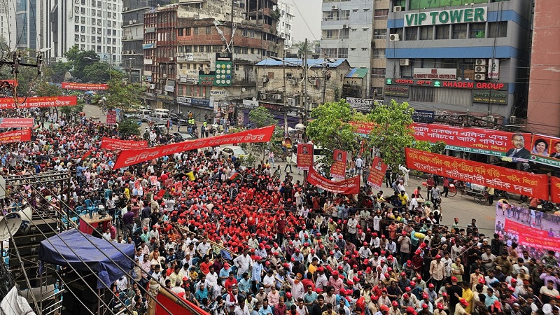 মহান মে দিবস উপলক্ষ্যে রাজধানীর নয়াপল্টন বিএনপির কেন্দ্রীয় কার্যালয়ে সামনে শ্রমিক সমাবেশের আয়োজন করেছে বিএনপি। দুপুর ২টায় আনুষ্ঠানিকভাবে সমাবেশ শুরু হওয়ার কথা থাকলেও আগে থেকেই খণ্ড খণ্ড মিছিল নিয়ে ঢাকা মহানগরী ও আশপাশের জেলা থেকে দলে দলে নেতাকর্মীরা যোগ দেন সমাবেশে।