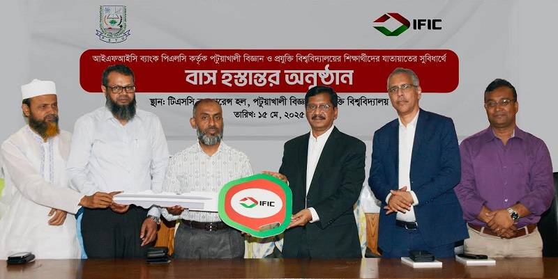 শিক্ষার্থীদের যাতায়াতের সুবিধা নিশ্চিত করতে পটুয়াখালী বিজ্ঞান ও প্রযুক্তি বিশ্ববিদ্যালয়কে (পবিপ্রবি) একটি বাস প্রদান করেছে আইএফআইসি ব্যাংক।