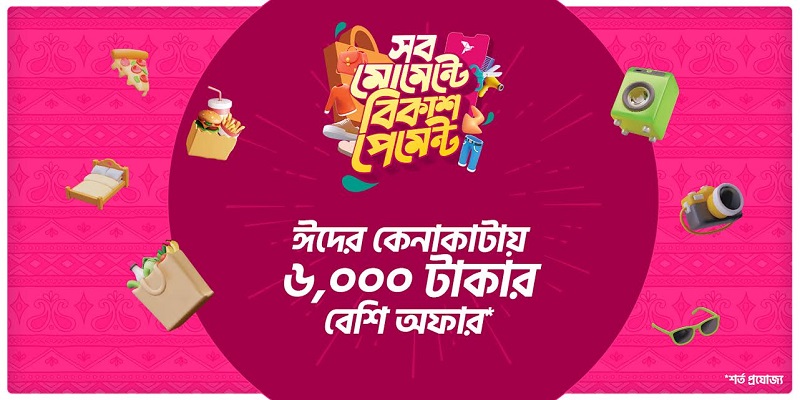 পবিত্র ঈদুল-উল-আজহা উপলক্ষ্যে কেনাকাটাকে আরো সহজ, সাশ্রয়ী ও আনন্দময় করতে দেশের সবচেয়ে বড় মোবাইল আর্থিক সেবাদাতা প্রতিষ্ঠান বিকাশ নিয়ে এসেছে অনলাইন ও অফলাইন কেনাকাটায় ৬ হাজার টাকা পর্যন্ত বিভিন্ন রকমের ডিসকাউন্ট ও ক্যাশব্যাক অফার। পোশাক, জুতা, অ্যাকসেসরিস, ইলেকট্রনিক্স, ফার্নিচার, পার্সোনাল কেয়ার-এর সুপরিচিত লাইফস্টাইল ব্র্যান্ড থেকে শুরু করে পছন্দের রেস্টুরেন্ট খাওয়া, সুপারস্টোরে কেনাকাটায় বিকাশ পেমেন্টে বিভিন্ন ‘কোড’ ব্যবহার করে ডিসকাউন্টগুলো পাওয়া যাবে ৭ জুন পর্যন্ত। পাশাপাশি, নির্দিষ্ট কিছু মার্চেন্টে পাওয়া যাচ্ছে ক্যাশব্যাক অফারও।