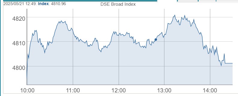 দেশের প্রধান পুঁজিবাজার ঢাকা স্টক এক্সচেঞ্জে (ডিএসই) সপ্তাহের পঞ্চম কার্যদিবস বুধবার (২১ মে) সূচকের উত্থানের মধ্য দিয়ে লেনদেন শেষ হয়েছে। গত কার্যদিবসের তুলনায় বেড়েছে লেনদেন। বেড়েছে বেশিরভাগ কোম্পানির শেয়ারদর।