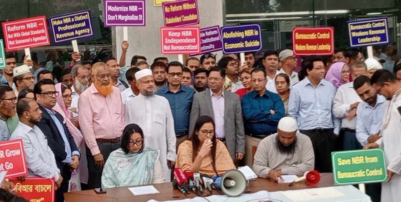 গত ১২ মে রাতে এনবিআর ভাগ করে ‘রাজস্ব নীতি ও রাজস্ব ব্যবস্থাপনা অধ্যাদেশ, ২০২৫’ অধ্যাদেশ জারি করে সরকার। এনবিআর বিলুপ্ত করার অধ্যাদেশ বাতিল করার দাবি জানিয়ে ১৩ মে থেকে কর্মসূচি শুরু করে এনবিআরের কর্মকর্তা-কর্মচারীরা। গত ২০ মে অর্থ উপদেষ্টার সঙ্গে বৈঠক করে এনবিআর সংস্কার ঐক্য পরিষদ।
