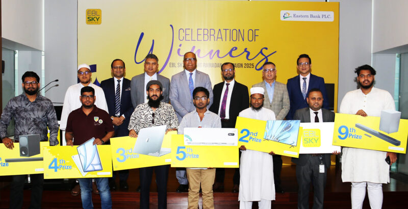 পবিত্র রমজাম মাসে ইবিএল স্কাইব্যাংকিং ক্যাম্পেইনে বিজয়ীদের পুরস্কার প্রদান করেছে ইস্টার্ন ব্যাংক। এ উপলক্ষ্যে আজ ব্যাংকটির প্রধান কার্যালয়ে এক অনুষ্ঠানের আয়োজন করা হয়। অনুষ্ঠানে বিজয়ীরা আইফোন, ম্যাকবুক, স্মার্ট টিভি, এয়ারকন্ডিশনার, রেফ্রিজারেটরসহ অন্যান্য আকর্ষণীয় পুরস্কার লাভ করেন।