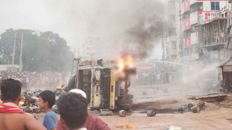ব্রাহ্মণবাড়িয়ার আশুগঞ্জ-আখাউড়া চার লেন মহাসড়কের নির্মাণাধীন অংশে ভয়াবহ দুর্ঘটনার ঘটনা ঘটেছে। খানাখন্দে ভরা সড়কে গ্যাস সিলিন্ডার বোঝাই একটি ট্রাক উল্টে গেলে আগুন ধরে একের পর এক সিলিন্ডার বিস্ফোরণ ঘটে।
