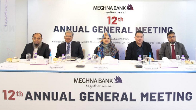 মেঘনা ব্যাংক পিএলসির ১২তম বার্ষিক সাধারণ সভা (AGM) অনুষ্ঠিত হয়েছে। ঢাকার মহাখালী সি/এ-এর মেডোনা টাওয়ারে আয়োজিত সভায় সভাপতিত্ব করেন ব্যাংকটির চেয়ারম্যান উজমা চৌধুরী।