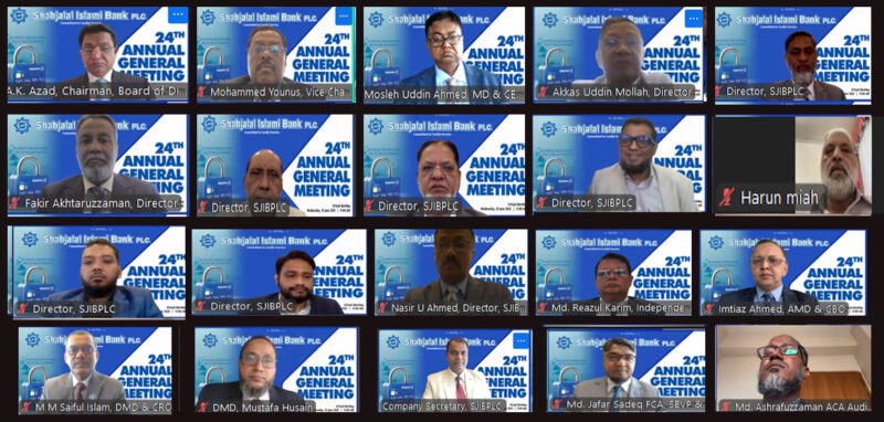 শাহ্জালাল ইসলামী ব্যাংক পিএলসির ২৪তম বার্ষিক সাধারণ সভা (এজিএম) অনুষ্ঠিত হয়েছে। বুধবার (২৫ জুন) ডিজিটাল প্লাটফর্মে (অনলাইন ভিডিও কনফারেন্স এর মাধ্যমে) অনুষ্ঠিত এ সভায় সভাপতিত্ব করেন ব্যাংকের পরিচালক পর্ষদের চেয়ারম্যান এ. কে. আজাদ।