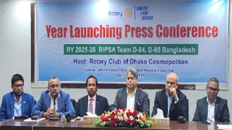 রোটারী ইন্টারন্যাশনাল বাংলাদেশ’র ২০২৫-২৬ বর্ষের সূচনাকে কেন্দ্র করে আজ সোমবার জাতীয় প্রেস ক্লাবে এক সাংবাদিক সম্মেলনের আয়োজন করা হয়। এতে রোটারীর বার্ষিক কর্মসূচী ঘোষণা করা হয় এবং যুদ্ধ ও সংঘাত পরিহার করে বিশ্ব শান্তি প্রতিষ্ঠার আহ্বান জানানো হয়।