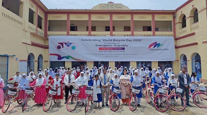 বিশ্ব সাইকেল দিবস- ২০২৫ উপলক্ষে এমটিবি ফাউন্ডেশন রাজশাহী, নওগাঁ ও জয়পুরহাট অঞ্চলের সুবিধাবঞ্চিত মেধাবী ছাত্রীদের মাঝে বিনামূল্যে সাইকেল বিতরণ করেছে।
