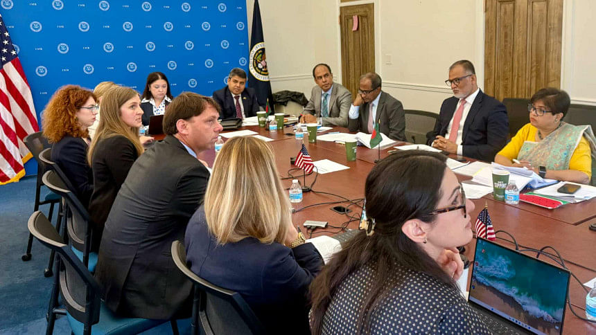 ওয়াশিংটন ডিসিতে বাংলাদেশ প্রতিনিধি দলের নেতৃত্ব দেন বাণিজ্য উপদেষ্টা শেখ বশিরউদ্দীন। ঢাকা থেকে ভার্চুয়ালি আলোচনায় যুক্ত হন জাতীয় নিরাপত্তা উপদেষ্টা ড. খলিলুর রহমান এবং প্রধান উপদেষ্টার তথ্যপ্রযুক্তি ও টেলিযোগাযোগ বিষয়ক বিশেষ সহকারী ফয়েজ আহমদ তৈয়্যব।