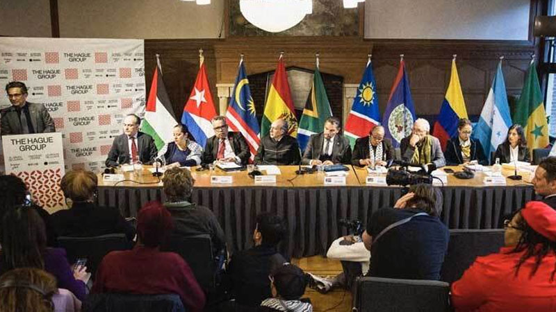 দ্য হেগ গ্রুপের সূচনা হয় ২০২৪ সালের ৩১ জানুয়ারি, নেদারল্যান্ডসের হেগ শহরে। তখন আটটি দেশ- বলিভিয়া, কলম্বিয়া, কিউবা, হন্ডুরাস, মালয়েশিয়া, নামিবিয়া, সেনেগাল ও দক্ষিণ আফ্রিকা- গ্রুপটির প্রাথমিক সদস্য হিসেবে এতে যোগ দেয়।