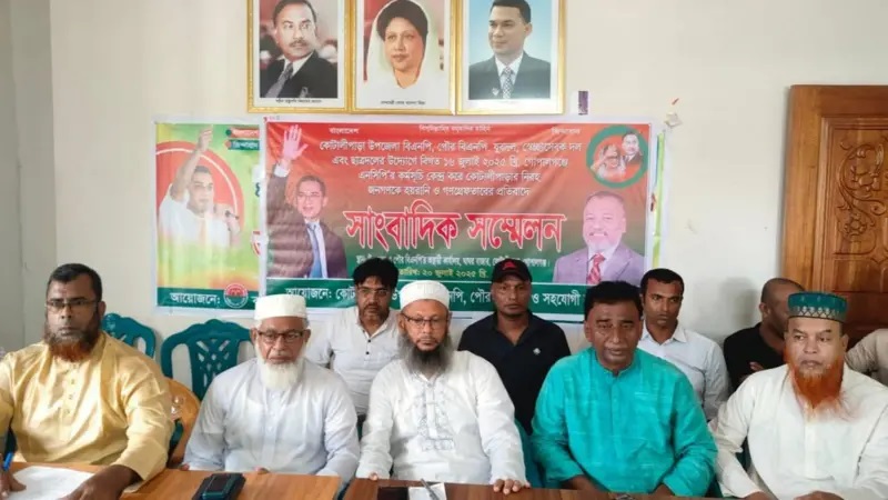 সংবাদ সম্মেলনে উপজেলা বিএনপির সভাপতি এস এম মহিউদ্দিন বলেন, গত ১৬ জুলাই বাংলাদেশের যে ফ্যাসিস্ট সরকার পতিত হয়েছে তার কিছু লোকজন আমাদের ওয়াবদার হাটে রাস্তাঘাট বন্ধ করে অরাজকতা সৃষ্টি করেছে। এই অরাজকতার কারণে কোটালীপাড়া উপজেলা পুলিশ প্রশাসন তাদের ১৫৫ জনের নাম উল্লেখ ও ১ হাজার ৫০০ জনকে অজ্ঞাত রাখে।
