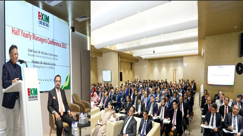 এক্সিম ব্যাংকের অর্ধবার্ষিক শাখা ব্যবস্থাপক সম্মেলন ২০২৫ আজ শনিবার রাজধানীর প্রধান কার্যালয়ে অনুষ্ঠিত হয়েছে। ব্যাংকের চলতি বছরের প্রথমার্ধের আর্থিক ফলাফল পর্যালোচনা এবং বাকি সময়ের ব্যবসায়িক পরিকল্পনা প্রণয়নের লক্ষ্যে এই সম্মেলনের আয়োজন করা হয়।