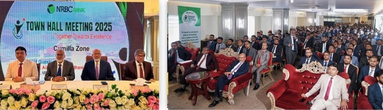 এনআরবিসি ব্যাংকের কুমিল্লা জোনে টাউন হল মিটিং অনুষ্ঠিত হয়েছে। শুক্রবার (১ আগস্ট) ফেনীর একটি হোটেল অনুষ্ঠিত টাউন হল মিটিংয়ে প্রধান অতিথি হিসেবে উপস্থিত ছিলেন ব্যাংকের চেয়ারম্যান মো. আলী হোসেন প্রধানিয়া। অনুষ্ঠানে ব্যাংকের ব্যবস্থাপনা পরিচালক ও সিইও ড. মো. তৌহিদুল আলম খান, ডিএমডি ও সিএফও হারুনুর রশীদ, কুমিল্লা জোনাল হেড কাজী মোহাম্মদ জিয়াউল করীমসহ শাখা-উপশাখাগুলোর সকলস্তরের কর্মকর্তারা উপস্থিত ছিলেন।