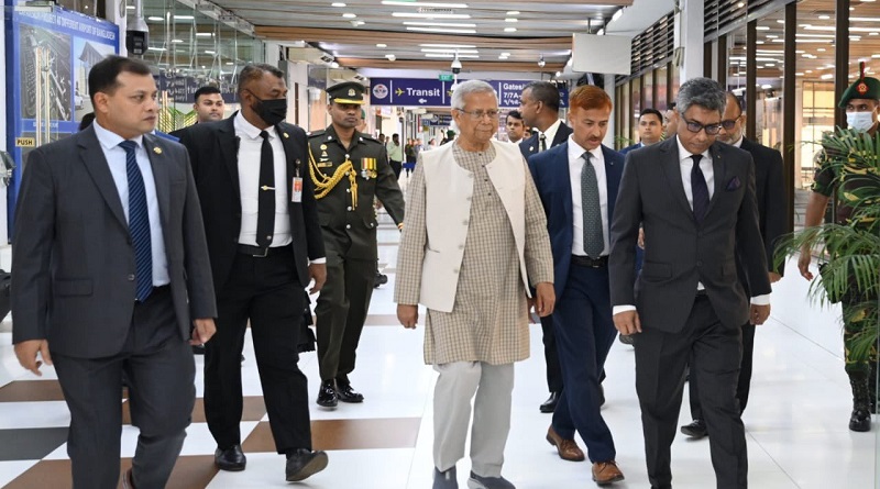 A flight of Biman Bangladesh Airlines carrying the Chief Adviser and his entourage departed Hazrat Shahjalal International Airport in Dhaka at about 2 pm, Chief Adviser’s Deputy Press Secretary Abul Kalam Azad Majumder said.