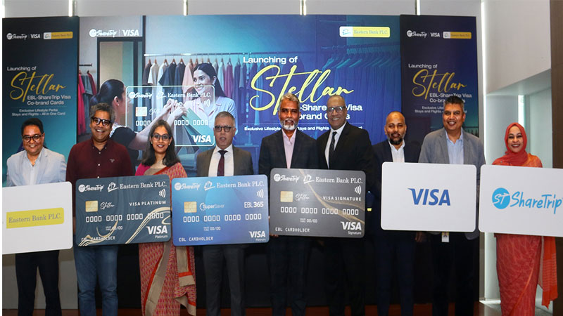 বাংলাদেশের শীর্ষস্থানীয় অনলাইন ট্রাভেল এজেন্সি শেয়ারট্রিপ এবং বৈশ্বিক পেমেন্ট প্ল্যাটফর্ম ভিসার সহযোগিতায় ইস্টার্ন ব্যাংক (ইবিএল) দেশের প্রথম লাইফ স্টাইল ও ভ্রমণকেন্দ্রিক ক্রেডিট এবং ডেবিট কার্ডের উদ্বোধন করেছে।