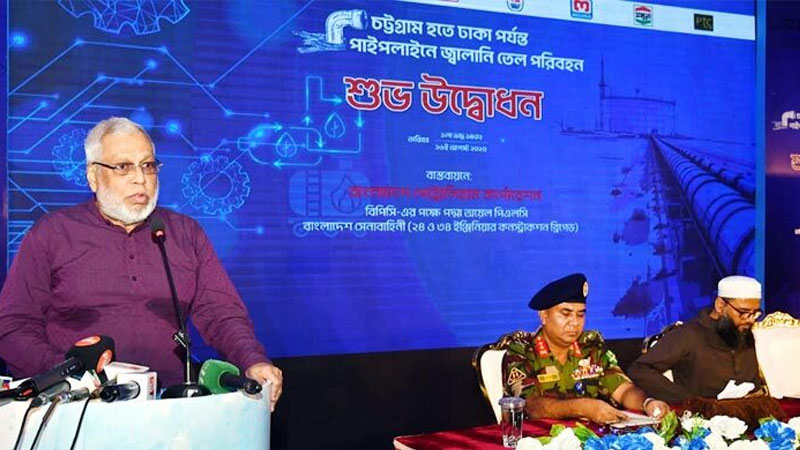 শনিবার (১৬ আগস্ট) দুপুরে চট্টগ্রাম–ঢাকা জ্বালানি তেল সরবরাহের পাইপলাইন প্রকল্পের উদ্বোধনী অনুষ্ঠানে প্রধান অতিথির বক্তব্যে তিনি এ তথ্য জানান।