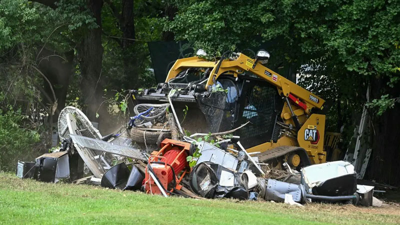 এরপর বৃহস্পতিবার শহর কর্তৃপক্ষ বুলডোজার দিয়ে ওই তাঁবুগুলো গুঁড়িয়ে দেয়। এ ঘটনায় অন্তত ১১ জন গৃহহীন আশ্রয় হারান। যাদের মধ্যে রয়েছেন ৬৬ বছর বয়সী বিল থিওডি। তিনি বলেন, “ট্রাম্প গাড়ির জানালা দিয়ে আমার ছবি তুলে তা নেতিবাচকভাবে ব্যবহার করেছেন। এটা তার রাজনৈতিক হাতিয়ার।”
