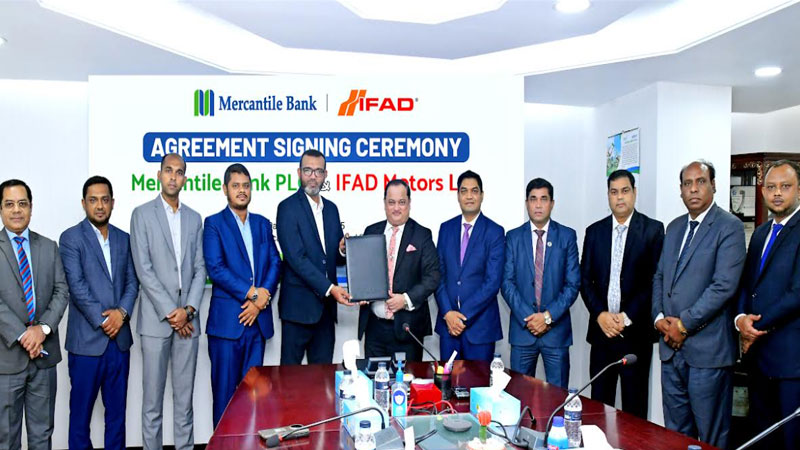 মার্কেন্টাইল ব্যাংক পিএলসি এবং ইফাদ মটরস লিমিটেড-এর মধ্যে পারস্পরিক সহযোগিতামূলক চুক্তি স্বাক্ষরিত হয়েছে।