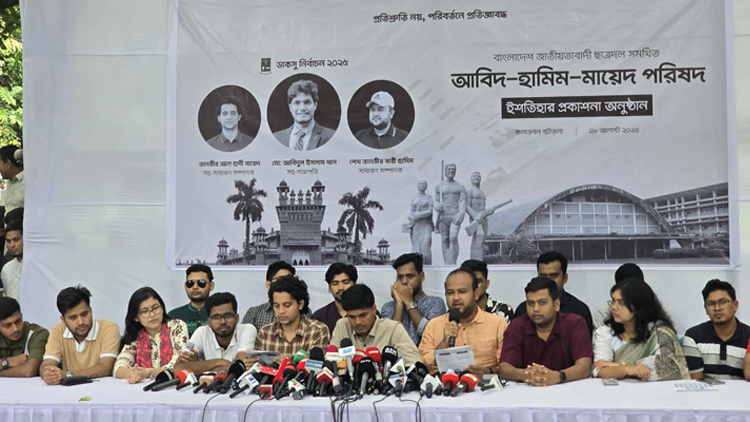 সংবাদ সম্মেলনে ছাত্রদলের ঢাকা বিশ্ববিদ্যালয় শাখার নেতারা উপস্থিত ছিলেন।