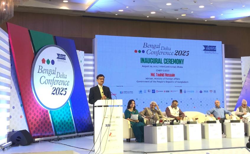 শুক্রবার ‘বেঙ্গল ডেল্টা কনফারেন্স ২০২৫’-এর উদ্বোধনী অনুষ্ঠানে প্রধান অতিথির বক্তব্যে পররাষ্ট্র উপদেষ্টা ড. মো. তৌহিদ হোসেন এ কথা বলেন।