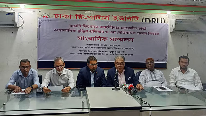 সংবাদ সম্মেলনে লিখিত বক্তব্য পাঠ করেন বাংলাদেশ ফ্রেইট ফরওয়ার্ডার্স অ্যাসোসিয়েশনের সদস্য আবরারুল আলম। তিনি বলেন, সাম্প্রতিক বৈশ্বিক অর্থনৈতিক মন্দা, দেশের বর্তমান অর্থনৈতিক ও রাজনৈতিক সংকট, যুক্তরাষ্ট্রের পাল্টা শুল্ক ও সার্বিক বাজার সংকটের এই সংকটজনক অবস্থায় কনটেইনার হ্যান্ডলিং চার্জ বৃদ্ধি করা হয়েছে। ফলে দেশের রপ্তানি অর্থনীতিতে বড় উদ্বেগ সৃষ্টি হয়েছে।