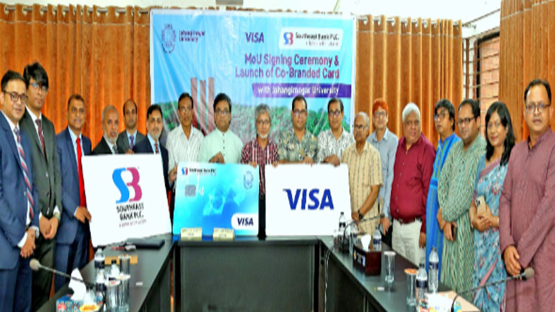 জাহাঙ্গীরনগর বিশ্ববিদ্যালয় ও সাউথইস্ট ব্যাংক পিএলসির মধ্যে একটি সমঝোতা স্মারক স্বাক্ষরিত হয়। এ চুক্তির আওতায় সাউথইস্ট ব্যাংক জাহাঙ্গীরনগর বিশ্ববিদ্যালয়ের শিক্ষকমণ্ডলী ও কর্মকর্তাদের জন্য কো–ব্র্যান্ডেড ক্রেডিট কার্ড এবং শিক্ষার্থীদের জন্য কো–ব্র্যান্ডেড প্রিপেইড কার্ড চালু করেছে।