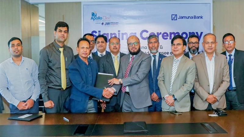 যমুনা ব্যাংকের উপ-ব্যবস্থাপনা পরিচালক ও সিবিও পদবি নূর মোহাম্মদ এবং অ্যাপোলো জেএমআই স্পেশালাইজড হাসপাতাল লিমিটেডের উপদেষ্টা পদবি মসিউর রহমান কামাল উক্ত চুক্তিতে স্বাক্ষর করেন।