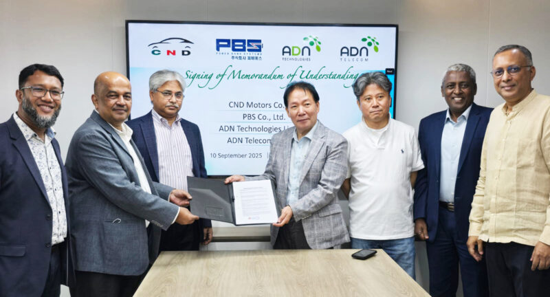 দেশের শীর্ষ তথ্যপ্রযুক্তি কনগ্লোমারেট এডিএন গ্রুপ দক্ষিণ কোরিয়ার খ্যাতনামা প্রতিষ্ঠান সি-এন-ডি মোটর্স কো. লি. এবং পিবিএস কো. লি.-এর সঙ্গে সমঝোতা স্মারক (MoU) স্বাক্ষর করেছে। এডিএন গ্রুপের দুটি কৌশলগত ব্যবসায়িক ইউনিট (SBU) এডিএন টেলিকম লিমিটেড ও এডিএন টেকনোলজিস লিমিটেড এই চুক্তি স্বাক্ষর করে।