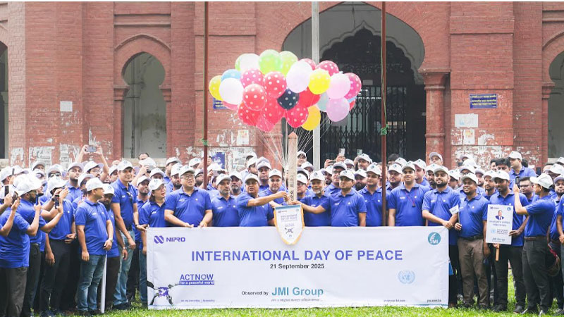 বর্ণাঢ্য আয়োজনে রাজধানী ঢাকায় জাতিসংঘ ঘোষিত ‘বিশ্ব শান্তি দিবস-২০২৫’ উদযাপন করেছে দেশের ওষুধ ও চিকিৎসা সরঞ্জাম উৎপাদন খাতের অন্যতম শীর্ষ প্রতিষ্ঠান জেএমআই গ্রুপ। রোববার সকালে ঢাকা বিশ্ববিদ্যালয়ের কার্জন হলে স্থাপিত ‘শান্তি স্তম্ভ’-এর সামনে বেলুন ও শান্তির প্রতীক সাদা পায়রা উড়িয়ে শান্তি দিবসের শোভাযাত্রা উদ্বোধন করেন জেএমআই গ্রুপের প্রতিষ্ঠাতা ও ব্যবস্থাপনা পরিচালক মো. আবদুর রাজ্জাক।