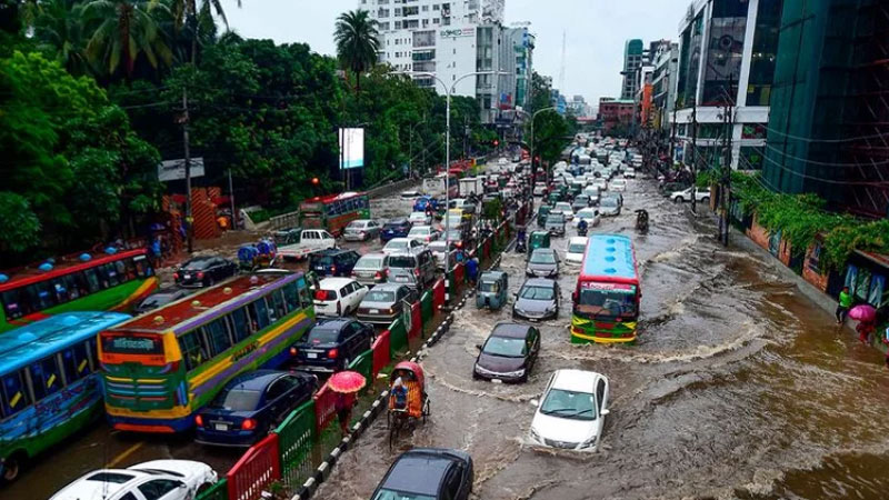 বিশেষ করে মিরপুর, মানিক মিয়া অ্যাভিনিউ, উত্তরা বিমানবন্দর সড়কের কোনো কোনো স্থানে হাঁটু সমান পানি জমে গেছে। এর ফলে দীর্ঘ যানজট ছড়িয়ে পড়েছে রাজধানীর প্রধান প্রধান সড়কগুলোতে।