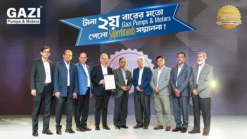 এরই ধারাবাহিকতায় কৃষি, শিল্প ও অর্থনৈতিক উন্নয়নে অসামান্য অবদানের স্বীকৃতিস্বরূপ টানা ২য় বারের মতো 𝐆𝐚𝐳𝐢 𝐏𝐮𝐦𝐩𝐬 & 𝐌𝐨𝐭𝐨𝐫𝐬 পেলো ‘Superbrands’ সম্মাননা। গত ২০ সেপ্টেম্বর, হোটেল লা মেরিডিয়ানে এক জমকালো অনুষ্ঠানের মাধ্যমে “সুপারব্র্যান্ডস বাংলাদেশ” দেশের শীর্ষ ব্র্যান্ডগুলোকে সম্মাননা প্রদান করে। গাজী পাম্পস্ এন্ড মটরস্ -এর পক্ষ থেকে সম্মাননা গ্রহণ করেন বদরুল আলম খান (গ্রুপ ডিরেক্টর), মোঃ আশরাফ উদ্দিন (চিফ অপারেটিং অফিসার), মনজুর আহমেদ তালুকদার (ডিজিএম, একাউন্টস এন্ড ফাইন্যান্স), মোঃ মোশাররফ হোসেন (ডিজিএম, সেলস্ এন্ড মার্কেটিং), মোঃ খালেদ রহিম (হেড অব এইচআর এন্ড এডমিন), আবুল কাউসার মোহাম্মদ সালাউদ্দিন (এজিএম, সেলস্ এন্ড মার্কেটিং), মোহাম্মদ মোস্তাফিজুর রহমান (ন্যাশনাল সেলস্ ম্যানেজার) এবং হাসান হাসিবুর রহমান রিশাত (হেড অব ডিজিটাল মার্কেটিং)।