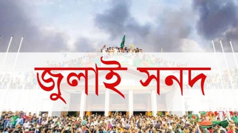 ১৩। জুলাই জাতীয় সনদ সংবিধানে অন্তর্ভুক্তকরণ।- জুলাই জাতীয় সনদ বাস্তবায়নের অঙ্গীকারনামা অনুসারে সংবিধানে জুলাই জাতীয় সনদ অন্তর্ভুক্ত হইবে।