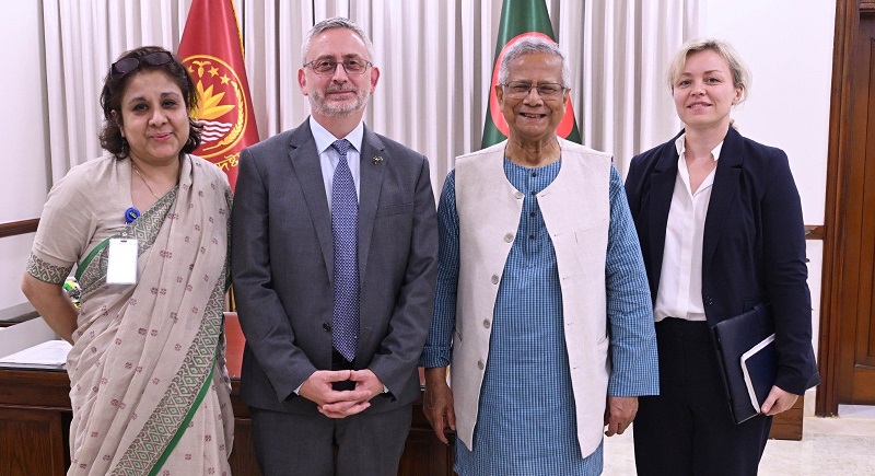 মঙ্গলবার ঢাকায় রাষ্ট্রীয় অতিথি ভবন যমুনায় অন্তর্বর্তী সরকারের প্রধান উপদেষ্টা প্রফেসর মুহাম্মদ ইউনূসের সঙ্গে সাক্ষাৎকালে বাংলাদেশে নিযুক্ত ইইউ রাষ্ট্রদূত মাইকেল মিলার এ তথ্য জানান।