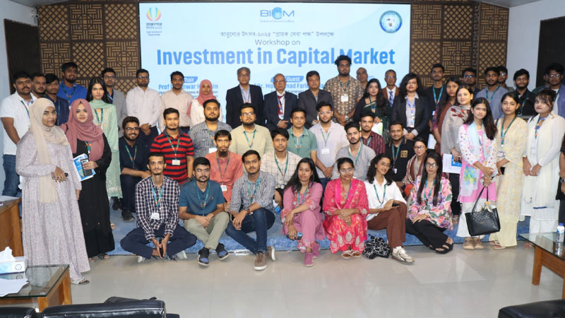 তারুণ্যের উৎসব-২০২৫ উপলক্ষে বাংলাদেশ ইন্সটিটিউট অব ক্যাপিটাল মার্কেট (বিআইসিএম) আমেরিকান ইন্টারন্যাশনাল ইউনিভার্সিটি-বাংলাদেশ (এআইইউবি)-বিজনেস এডমিনিস্ট্রেশন অনুষদের শিক্ষার্থীদের নিয়ে “ইনভেস্টমেন্ট ইন ক্যাপিটাল মার্কেট” শীর্ষক বিনিয়োগ শিক্ষা প্রশিক্ষণ আয়োজন করেছে।