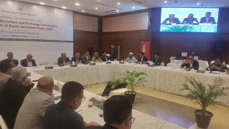 বুধবার (১৯ নভেম্বর) রাজধানীর নিকুঞ্জে ডিএসই টাওয়ারে অনুষ্ঠিত ‘বাংলাদেশ সিকিউরিটিজ অ্যান্ড এক্সচেঞ্জ কমিশন (পাবলিক অফার অব ইক্যুইটি সিকিউরিটিজ) রুলস, ২০২৫’ শীর্ষক বৈঠকে সভাপতির বক্তব্যে এসব কথা বলেন ডিএসই চেয়ারম্যান।