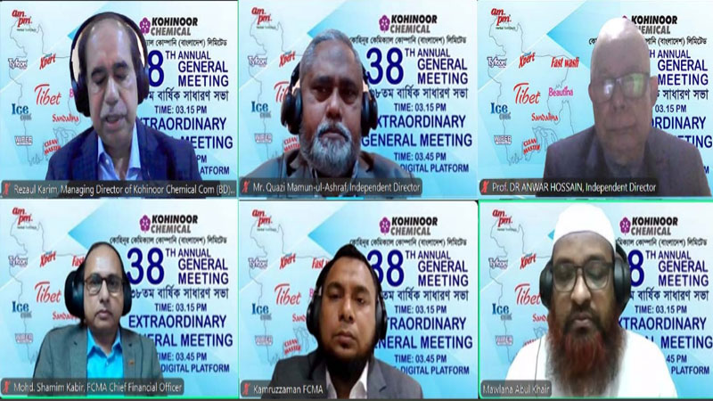 দেশের স্বনামধন্য প্রসাধনী প্রস্তুতকারক ও বিপণনকারী প্রতিষ্ঠান কোহিনূর কেমিক্যাল কোম্পানী (বাংলাদেশ) লিমিটেডের ৩৮তম বার্ষিক সাধারণ সভা রবিবার (৭ ডিসেম্বর) বিকাল ৩ টা ১৫ মিনিটে ডিজিটাল প্ল্যাটফর্মে অনুষ্ঠিত হয়।