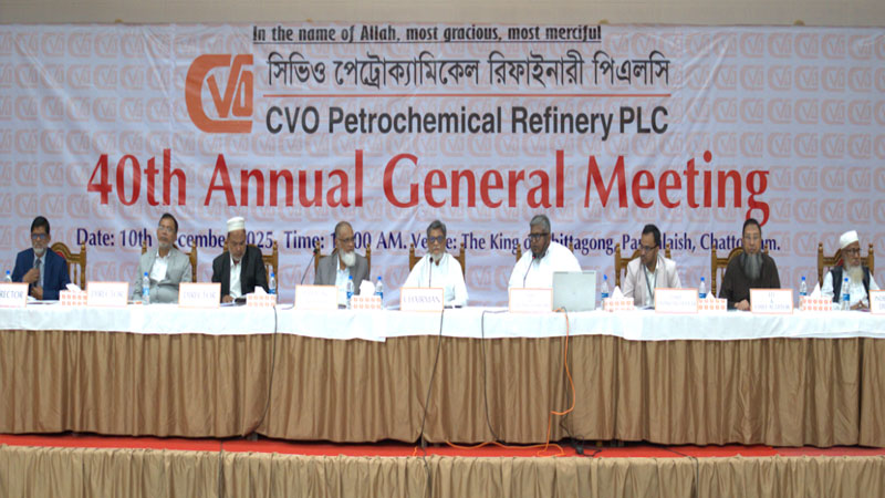 বাংলাদেশ সিকিউরিটিজ এন্ড এক্সচেঞ্জ কমিশনের নির্দেশনায় সিভিও পেট্রোক্যামিকেল রিফাইনারী পিএলসির ৪০তম বার্ষিক সাধারণ সভা (এজিএম) আজ হাইব্রিড প্ল্যাটফর্মে দ্যা কিং অব চিটাগাং-এ অনুষ্ঠিত হয়েছে।