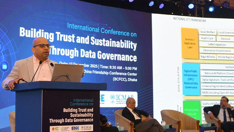 বুধবার (১৭ ডিসেম্বর) বাংলাদেশ–চীন মৈত্রী সম্মেলন কেন্দ্রে অনুষ্ঠিত ‘বিল্ডিং ট্রাস্ট অ্যান্ড সাসটেইনেবিলিটি থ্রু ডেটা গভর্ন্যান্স’ শীর্ষক আন্তর্জাতিক সম্মেলনে প্রধান উপদেষ্টার ডাক, টেলিযোগাযোগ ও তথ্যপ্রযুক্তি মন্ত্রণালয়ের দায়িত্বপ্রাপ্ত বিশেষ সহকারী ফয়েজ আহমদ তৈয়্যব প্রধান অতিথির বক্তব্যে এসব কথা বলেন।
