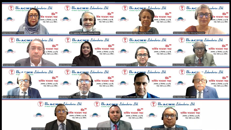 দি একমি ল্যাবরেটরিজ লিমিটেডের ৪৯ বার্ষিক সাধারণ সভা সোমবার (২২শে ডিসেম্বর) সকাল ১১ টা ৩০ মিনিটে ডিজিটাল প্ল্যাটফর্মে অনুষ্ঠিত হয়। শেয়ারহোল্ডারগণ ২০২৪-২০২৫ আর্থিক বছরের জন্য ৩৫ শতাংশ নগদ লভ্যাংশ অনুমোদন করেছেন। চেয়ারম্যান নাগিনা আফজাল সিনহা কোম্পানির ৪৯ বার্ষিক সাধারণ সভায় সভাপতিত্ব করেন।