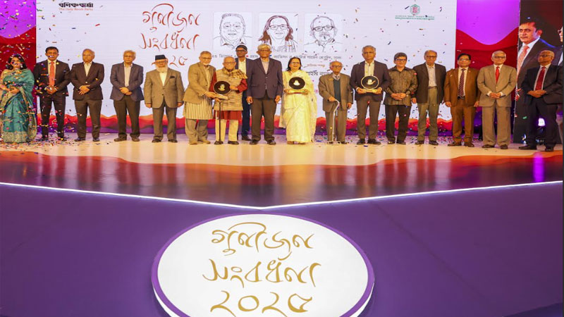 গণমাধ্যম ও বাংলাদেশ উন্নয়ন গবেষণা প্রতিষ্ঠান (বিআইডিএস) যৌথ উদ্যোগে ‘গুণীজন সংবর্ধনা ২০২৫’ অনুষ্ঠিত হয়েছে। মঙ্গলবার (২৩ ডিসেম্বর) সন্ধ্যায় রাজধানীর র্যাডিসন ব্লু ওয়াটার গার্ডেনে অষ্টমবারের মতো এ আয়োজন অনুষ্ঠিত হয়। অনুষ্ঠানের সূচনা বক্তব্য দেন বিআইডিএসের মহাপরিচালক অধ্যাপক ড. এ কে এনামুল হক এবং সঞ্চালনা করেন গণমাধ্যম সম্পাদক ও প্রকাশক দেওয়ান হানিফ মাহমুদ।