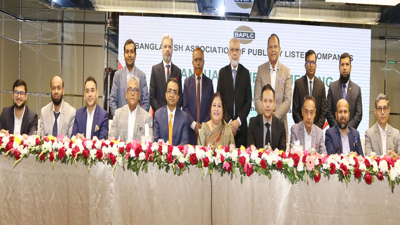 পুঁজিবাজারের তালিকাভুক্ত কোম্পানীগুলোর শীর্ষ সংগঠন বাংলাদেশ এসোসিয়েশন অব পাবলিকলী লিষ্টেড কোম্পানিজ (বিএপিএলসি)-এর ২৬তম বার্ষিক সাধারণ সভা গত বুধবার (২৪ ডিসেম্বর) ঢাকার একটি হোটেলে অনুষ্ঠিত হয়। এসোসিয়েশনের সভাপতি রুপালী হক চৌধুরী সভায় সভাপতিত্ব করেন এবং নব-নির্বাচিত সভাপতি রিয়াদ মাহমুদ, সহ-সভাপতি ইঞ্জিনিয়ার সৈয়দ ইশতিয়াক আহমেদ এ সময় উপস্থিত ছিলেন।
