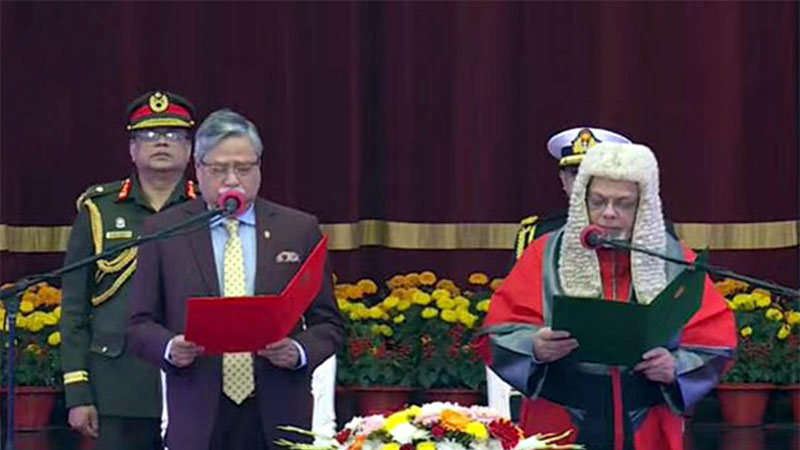 তাকে শপথ পড়ান রাষ্ট্রপতি মো. সাহাবুদ্দিন। এ সময় অন্তবর্তী সরকারের প্রধান উপদেষ্টা অধ্যাপক ড. মুহাম্মদ ইউনূস উপস্থিত ছিলেন।