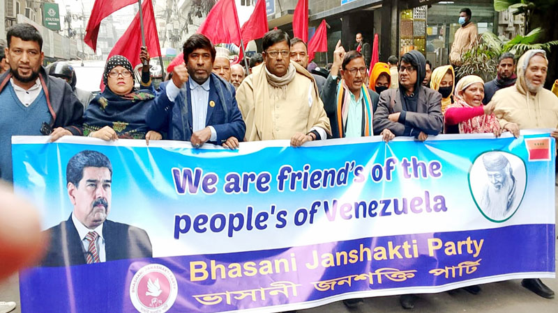 আমেরিকা কর্তৃক স্বাধীন সার্বভৌম রাষ্ট্র ভেনিজুয়েলায় হামলা চালিয়ে প্রেসিডেন্ট নিকোলাস মাদুরো ও তার স্ত্রী সিলিয়া ফ্লোরেসকে তুলে নিয়ে গিয়ে বন্দী করার প্রতিবাদে ভাসানী জনশক্তি পার্টির চেয়ারম্যান শেখ রফিকুল ইসলাম বাবলু ও মহাসচিব ডক্টর আবু ইউসুফ সেলিমের নেতৃত্বে ভাসানী জনশক্তি পার্টির নেতাকর্মীরা বিক্ষোভ সমাবেশের আয়োজন করে। বিক্ষোভ মিছিলটি পুরাতন পল্টন চায়ের গলি থেকে শুরু হয়ে বিজয়নগর, পানির ট্যাংকি, পুরাতন পল্টন হয়ে প্রেসক্লাবে গিয়ে এক প্রতিবাদ সমাবেশে মিলিত হয়।