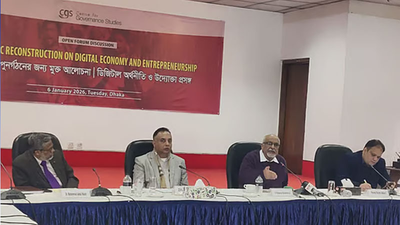 সেন্টার ফর গভর্ন্যান্স স্টাডিজ (সিজিএস) আয়োজিত ‘গণতান্ত্রিক পুনর্গঠনের জন্য মুক্ত আলোচনা: ডিজিটাল অর্থনীতি ও উদ্যোক্তা প্রসঙ্গ’ শীর্ষক অনুষ্ঠানে উপস্থিত অতিথিরা। আজ মঙ্গলবার রাজধানীর সিরডাপ মিলনায়তনে।