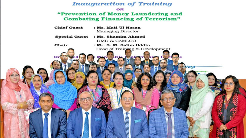 কর্মকর্তাদের মধ্যে সচেতনতা বৃদ্ধি এবং কমপ্লায়েন্স শক্তিশালী করার লক্ষ্যে মার্কেন্টাইল ব্যাংক ট্রেনিং ইনস্টিটিউটে বুধবার এক দিনব্যাপী “অর্থপাচার প্রতিরোধ ও সন্ত্রাসে অর্থায়ন প্রতিরোধ” বিষয়ক প্রশিক্ষণের আয়োজন করা হয়েছে।